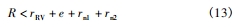 分體式擺線輪的主要參數(shù)為: R、e、rRV、rn1、rn2。擺線輪傳動是依靠各對針齒的依次嚙合來實現(xiàn)的,為保證擺線輪能夠連續(xù)傳動,工作過程中應(yīng)始終有至少一對針齒嚙合,即實際嚙合線的長度與針齒齒距的比值大于 1。