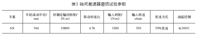 QC/T 533標準中沒有規定軸間差速器的疲勞試驗,規定按照表3參數進行。