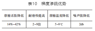 3)目前比較前沿的技術是在十字軸表面實施梯度滲硫(見圖5)、滲金屬等材料表面改性工藝,也是提高表面硬度減小摩擦系數的方法。梯度滲硫的優勢見表10。