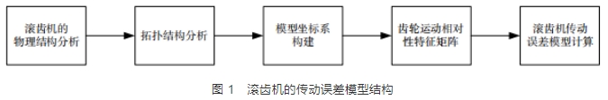 滾齒機的傳動誤差模型作為本次研究的重要組成之一,對于小模數(shù)齒輪的實際加工環(huán)境具有較高的精度要求,同時環(huán)境對其存在一定的影響。在構建滾齒機的傳動誤差模型時,將其分為 5 個部分,如圖 1 所示。