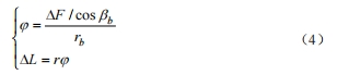 式中:φ 為轉(zhuǎn)角誤差;?F 為齒合線的增量;βb 為齒輪基圓螺旋角 ;rb 為分度圓半徑 ;?L 為分度圓弧長誤差 ;r 為半徑。
