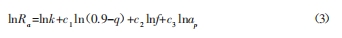 令 y=lnRa ,c0 =lnk,x1 =ln(0.9-q),x2 =lnf,x3 =lnap ,則模型可化為: