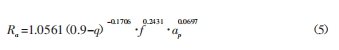 對試驗數據進行分析,可初步建立粗糙度與三個修整工藝參數的指數關系模型: