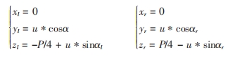 令錐形蝸桿繞自身軸線的旋轉(zhuǎn)角速度為 ωc,沿齒輪軸線斜向下的移動速度為 Vc。對于錐形蝸桿左右齒面上任意一點,在坐標系 S1 中的速度可以表示為: