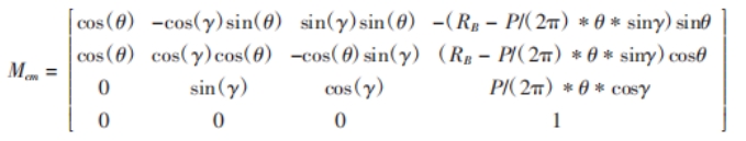 式中:u 為自由變量;P 為錐形蝸桿的平均導(dǎo)程。坐標系 Sc 與坐標系 Sm 間的轉(zhuǎn)換矩陣 Mcm 為: