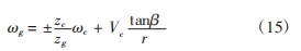 齒輪的轉(zhuǎn)動角速度 ωg 不僅受錐形蝸桿的轉(zhuǎn)動速度 ωc 的影響,還受錐形蝸桿的移動速度 Vc的影響。ωg 的計算公式如下:
