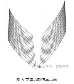 針對表 1 的變厚齒輪數(shù)據(jù),設(shè)計了錐形蝸桿參數(shù)(表 2),并利用所建立的錐形蝸桿磨削變厚齒輪齒輪的數(shù)字模型計算變厚齒輪仿真模型。并將仿真模型與理論變厚齒輪進行了對比。