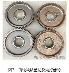 根據(jù)試驗結(jié)果,及結(jié)合前文中對失效齒輪分析結(jié)果,可以推斷失效齒輪的凹坑形貌及大小同銹蝕后齒輪磷化后的凹坑形貌及大小相似。結(jié)合近期流轉(zhuǎn)過程中遭遇幾次臺風氣象干擾,可以判斷本次失效的主要原因為齒輪轉(zhuǎn)運過程中發(fā)生銹蝕導致。