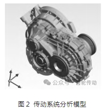 根據(jù)設(shè)計(jì)要求,在 MASTA 中建立減速器分析模型(見圖2)。依據(jù)電機(jī)特性,在最大扭矩420N·m 下進(jìn)行分析,轉(zhuǎn)速為2000r/min,在此工況下采用 MASTA 對(duì)減速器進(jìn)行嚙合與振動(dòng)噪聲仿真分析。
