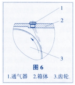 通氣器漏油的主要原因有通氣器結構不合理和通氣器位置選擇不當,通氣器位置如果選擇不當,會在通氣器處持續不斷地產生滲漏油,如圖6。