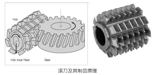 滾切齒輪屬于展成法,其所用到的刀具為滾刀(如上圖所示),滾刀與被加工齒輪相當于一對螺旋齒輪作無側隙強制性的嚙合。