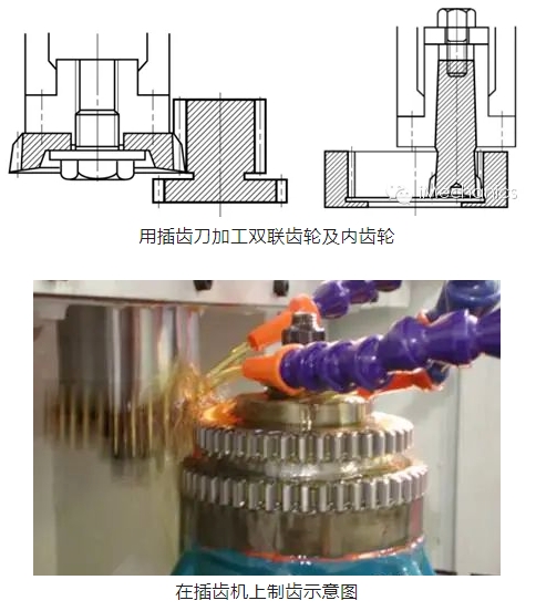 插齒通常被用來加工帶有臺肩的齒輪以及空刀槽很窄的雙聯或多聯齒輪, 人字齒輪,內齒輪等,而這些類型的齒輪通常采用滾齒很難實現。