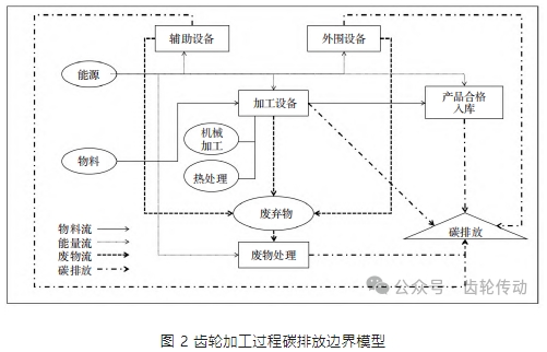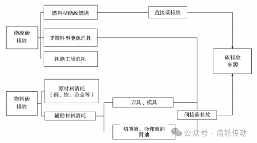 在齒輪制造過程中,能源主要以機械設備、設施為消耗主體,能耗產生的碳排放一般來自加工設備、輔助設備和外圍設備。