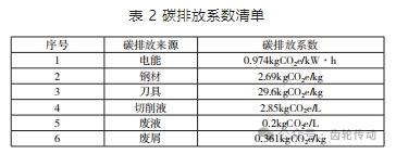 上述已建立齒輪加工的碳排放系數法計算模型,該方法的計算精度取決于碳排放清單的完整度和準確度,因此對 1.3 節中的碳排放核算清單進行更新,補充各碳排來源的碳排放系數,使其后續的案例計算具有完整性和準確性。碳排放系數清單見表 2。