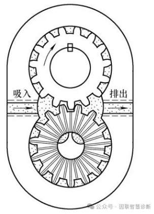 1)外齒輪泵。主動齒輪和從動齒輪均為外齒輪,如圖6-1所示。外嚙合齒輪泵是應用最廣泛的一種齒輪泵,一般齒輪泵通常就指外嚙合齒輪泵。
