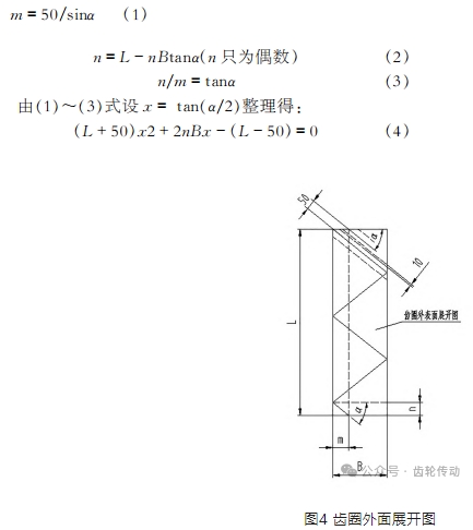 由于噴槍與工件旋轉為變頻調速,變頻器最佳工作頻率范圍為20Hz~50Hz,所以角度α受此限制只能存在于一個角度范圍內,又因n只為偶數,所以α的解可把n=2, 4,6,8……帶入求得。對應于不同α值有確定的噴槍移動速度和工件旋轉速度。