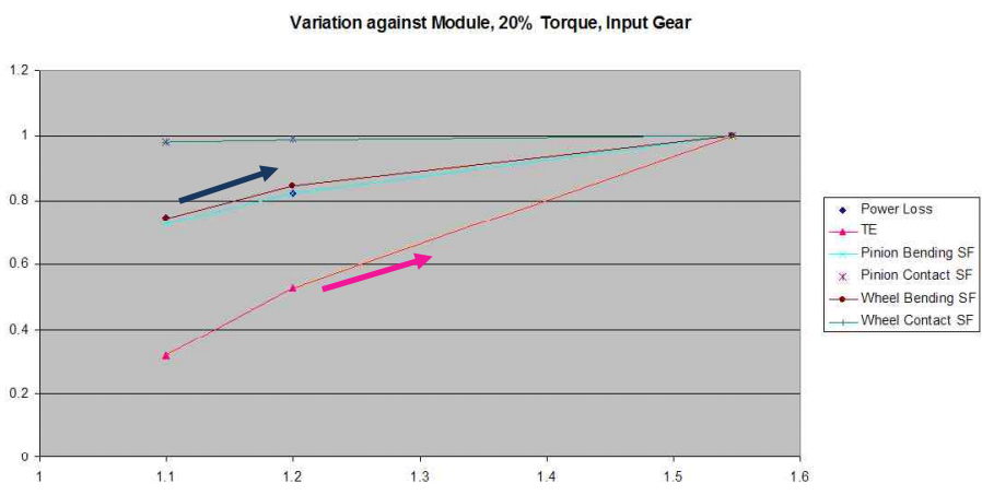 ? 模數:在整數倍重合度條件下,模數越大,功率損失越大,強度越好,TE越來越大。