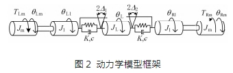 雙電機精密傳動機構(gòu)動力學模型是進行系統(tǒng)參數(shù)分析的基礎,為消隙方法的提出提供理論依據(jù)。
