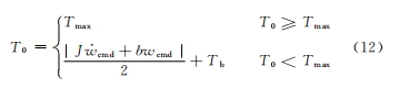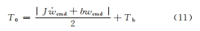 其中,J 為等效合成慣量,b 為等效合成阻尼系數(shù)。由圖7可知,要實現(xiàn)系統(tǒng)在運動全過程內(nèi)的完全消隙,則無論速度指令 wcmd 多大,兩個行星減速器的輸出力矩方向必須保持不變且相反,如 τ1 >0,τ2 <0,因此可得兩齒輪之間的偏置力矩須滿足2T0 >|Tcmd|。負載端力矩指令的大小受到電機軸、小齒輪、大齒圈和負載的轉(zhuǎn)動慣量、阻尼,以及負載的運動速度和加速度等因素的影響: