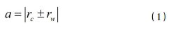 安裝中心距 a 的大小由車齒刀分度圓半徑 rc 與工件分度圓半徑 rw 決定: