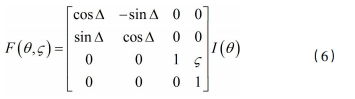 設 M(Δ)表示漸開線生成漸開面的的齊次變換矩陣,以標準漸開線沿齒輪軸線的位移量 ζ 為參數,齒輪理論齒面的齊次坐標方程 F(θ,ζ)如式(6)所示:
