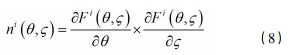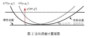 齒面包絡波紋誤差是沿理論齒面 F(θ,ζ)上一點的法向計算的,即齒面的法向誤差,理論齒面 F(θ,ζ)的法向量計算公式為: