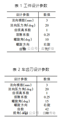 影響車齒加工質量的因素有很多,主要包括刀具幾何參數、切削參數、設備因素、環境因素等。本文對車齒加工過程中不同軸向進給量 f、刀具螺旋角 βc 和刀具前角 γ0 下成形齒面微觀形貌進行數值仿真計算,車齒刀和工件的設計參數如表 1 和表 2 所示。