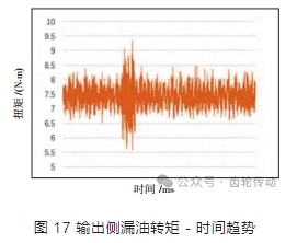 經過長時間運行,通過觀察,發現軸 2 減速器輸出側漏油明顯,此時捕捉到的諧波齒輪減速器轉矩趨勢圖如圖 17 所示,由圖可見轉矩的變化。