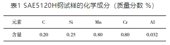 本次實驗研究中所用的試樣取自興澄生產的 SAE5120H鋼,主要化學成分如表1所示。