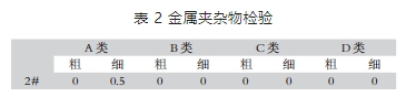 在 2# 輪齒上取縱截面,參照 GB/T 10561-2005 鋼中金屬夾雜物含量的測(cè)定標(biāo)準(zhǔn)評(píng)級(jí)圖顯微檢驗(yàn)法進(jìn)行評(píng)級(jí),輪齒的金屬夾雜物評(píng)為 A 類細(xì)系 0.5 級(jí),結(jié)果見表 2。