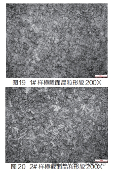 參照 GB/T 6394-2017 金屬平均晶粒度測(cè)定方法,1# 輪齒和 2# 輪齒的晶粒度評(píng)為 7 級(jí),形貌見圖 19、圖 20。