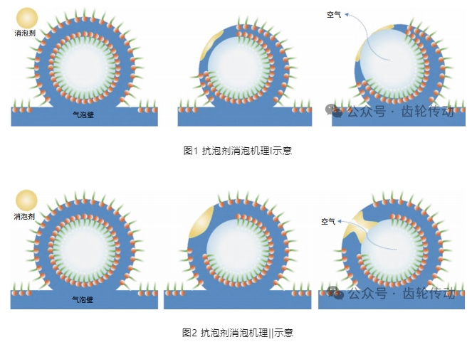 在機(jī)械設(shè)備運(yùn)行過程中,泡沫的出現(xiàn)會(huì)破壞齒輪表面油膜的完整性,使得潤滑方式從混合潤滑向邊界潤滑靠近,從而導(dǎo)致齒輪表面磨損、疲勞、點(diǎn)蝕、燒結(jié)等問題;泡沫的長期存在還會(huì)加速油品老化,嚴(yán)重影響油品的使用壽命。在有循環(huán)系統(tǒng)的齒輪箱中,通過試車階段對(duì)液壓設(shè)備排氣,調(diào)整回油管路位置、控制油溫變化、校準(zhǔn)液面高度等物理手段可避免工業(yè)齒輪油泡沫的產(chǎn)生。然而,由于實(shí)際工況的復(fù)雜多變,物理手段難以穩(wěn)定、高效地解決泡沫問題,工業(yè)上常使用抗泡劑提高油品的泡沫性能,以減少泡沫的出現(xiàn)。