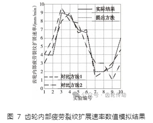通過實驗獲得齒輪內部疲勞裂紋擴展速率數值模擬結果如圖 7 所示。