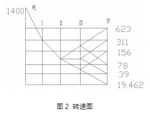第一變速組采用降速傳動(圖2)時,由于不具有反向鎖止功能,使得輸出軸和輸入軸不在同一條直線上,坐標的偏移量較大,造成傳動效率不高,能量消耗較大,精度不高,加工誤差成幾何倍率增加。這種設計不可取。
