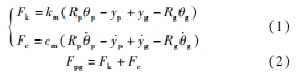 模型具有 4 個(gè)自由度,分別為主、從動(dòng)輪轉(zhuǎn)動(dòng)自由度 θp 、θg 及沿嚙合線方向的平移自由度 yp 、yg。以各彈簧受壓方向?yàn)檎较颍瑒t齒輪副動(dòng)態(tài)嚙合力可表示為: