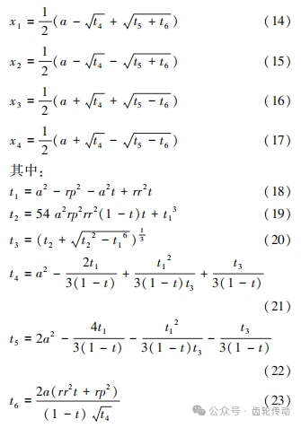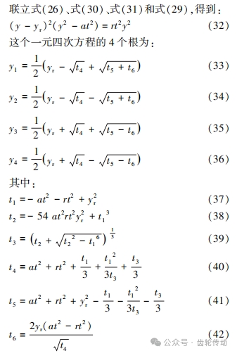 因?yàn)?t5-t6 是負(fù)數(shù),所以式(35)、(36)這兩個(gè)根是虛數(shù)根,沒(méi)有意義要舍去,而式(34) 這個(gè)根是負(fù)數(shù),所以也沒(méi)有意義要舍去。所以 y 的真根是式 (33),解出了 y 的值,根據(jù)式(26) ~ (29),得到 xr 的表達(dá)式如下: