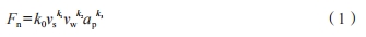 磨削力數學模型的建立能夠預測在不同磨削條件下的加工性能,從而有利于找到最佳的磨削工藝參數。磨削力由法向和切向兩部分組成,在本次試驗中兩者的變化趨勢相同,并且本次試驗測得的磨削力符合一般磨削的基本規律,測量數據可靠,本文以法向磨削力為目標,建立經驗公式以指導加工參數的選擇。根據經驗公式的普適模型可表達為