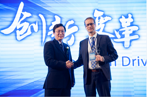 山特維克可樂(lè)滿(mǎn)大中華區(qū)國(guó)際客戶(hù)高級(jí)經(jīng)理Mats Nordin上臺(tái)領(lǐng)獎(jiǎng)