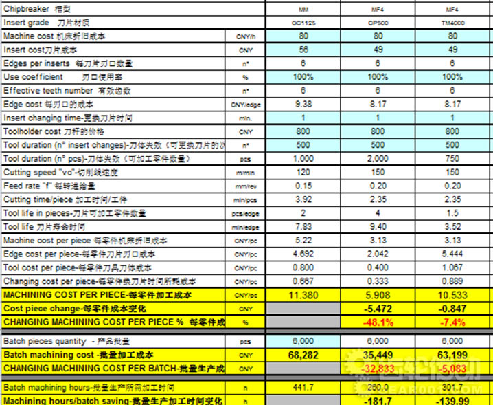 山高使用PCA(Productivity Cost Analysis)工具作為測試最終數據的報告和對比工具,該工具可以將機床成本,折舊,人工成本,材料等相關數據綜合計算,得到一個產品的單件加工成本,以及每件產品的時間成本、每個刀尖的相應成本,大大簡化了刀具性能比較的復雜計算工作,該分析方法在全球范圍內得到了阿法拉伐集團的廣泛認可。