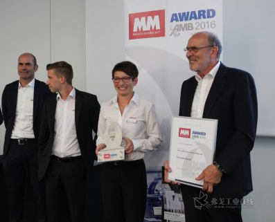 Gerhard Rall愉悅而自豪地手握獎牌(從左到右依次為:瀚柏格研發經理Attillio Mandarello、研發工程師Sebastian Ivenz、市場經理Anke Reichenecker和首席執行官Gerhard Rall先生。瀚柏格自去年5月,因兩種產品及聯網方案獲“巴登-符騰堡州工業 4.0 百強”大獎后,在2016年再獲殊榮。在2016年德國斯圖加特金屬加工展覽會(AMB)上,瀚柏格憑借其新開發的智能Toplus IQ夾盤,從眾多參展商中脫穎而出,榮獲MM創新獎。在夾緊裝置類別中,8名裁判從三位入圍展商中最終選定瀚柏格,并授予其卡盤殊榮。裁判高度評價了這家位于德國馬爾巴赫的家族企業的開拓精神和卓越的設計能力。這款卡盤在技術創新程度,以及對工業、環境和社會的作用和經濟效率等關鍵性評判標準中拔得頭籌。瀚柏格首席執行官Gerhard Rall在獲獎后發表感言:“創新就是給客戶帶來驚喜,我們也同樣得到了裁判的認可。“在過去,人們總是將注意力放在鋼鐵上,不過現在,機電一體化和數字化在產品開發中的作用已越來越重要,”Rall解釋道。