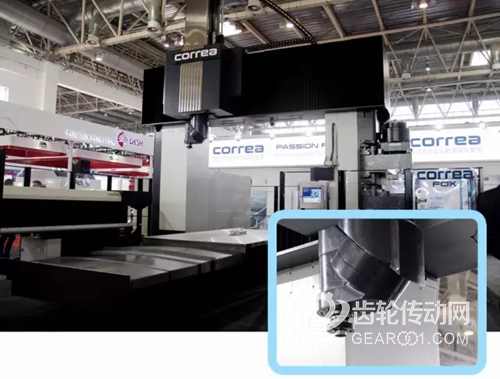 中國首展。工作臺尺寸3500mm×2000mm,龍門通過寬3250mm,X/Y/Z軸行程3000/3750/1500mm,同時配備兩個銑頭及自動換頭系統,萬能回轉式自動微分度銑頭37kW,轉速6000r/min,電主軸式五軸聯動銑頭功率60kW,轉速20000r/min,刀庫容量40把。設計采用不同技術方案提高結構剛度和精度,框架結構尺寸具有良好的剛度和阻尼性能,驅動系統及運動機構保證了高精度和良好的動態性能,可選配多種附件和銑頭,具有廣泛的通用性,滿足各領域粗精加工需求。