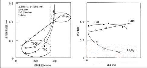 圖2:切削速度與后刀面磨損 圖 3:溫度和熱擴散率