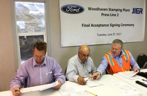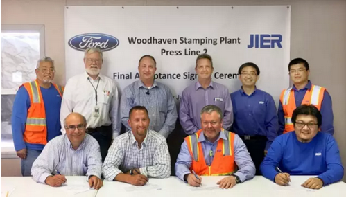 6月27日,濟南二機床按期交付美國福特汽車的第八條快速沖壓線(WSP2)在經過3套模具試模之后,順利通過用戶終驗收,福特用戶再次對項目的持續提升給予好評。