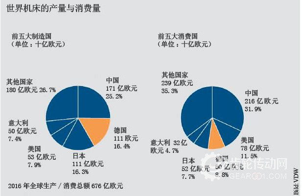 根據(jù)VDW在其2016年市場(chǎng)報(bào)告中的描述,2016年中國的機(jī)床設(shè)備產(chǎn)量增加了12%,當(dāng)前總產(chǎn)值達(dá)到了171億歐元,(德國111億歐元),占據(jù)全球市場(chǎng)的25.2%。中國機(jī)床市場(chǎng)的需求率高達(dá)31.9%,或者說市場(chǎng)需求份額為216億歐元,這說明中國對(duì)機(jī)床的需求仍然保持高位。總之,世界機(jī)床市場(chǎng)的主要需求(54.1%或者表示為366億歐元的需求份額)仍在亞洲。隨著市場(chǎng)不斷需求更高品質(zhì)以及更大自動(dòng)化程度產(chǎn)品,德國機(jī)床制造商將會(huì)從中獲得更大利益。