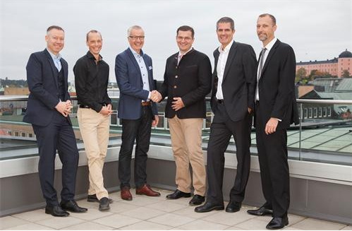 成功簽署合約后(從左到右):Jonas Lundberg (歐瑞康巴爾查斯瑞典總經(jīng)理)、Olle Wänstrand (Primateria總經(jīng)理),Mats Larsson (Primateria總經(jīng)理),Martin Bartsch (歐瑞康巴爾查斯北歐中心負(fù)責(zé)人),Rickard Gåhlin (Primateria總經(jīng)理) 和Mathias Pettersson (Primateria總經(jīng)理).