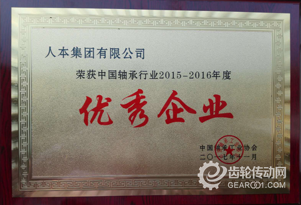 11月16日,中國軸承工業協會在遼寧省大連市召開“中國軸承行業企業管理工作會議”。會上對2015-2016年度先 進集團和先進個人進行了表彰,人本集團榮獲中國軸承行業2015-2016年度管理創新“優秀企業”榮譽稱號,人本集團總裁胡龍流評選為中國軸承行業2015-2016年度“優秀企業家”榮譽稱號。