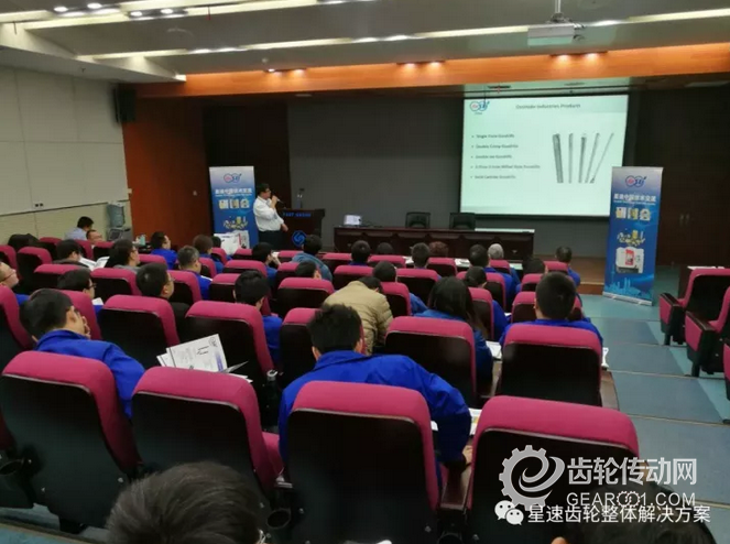 上圖為星速中國齒輪加工刀具產品經理--Robin Yu 于佳先生在為與會者講解滾刀、剃刀等新材料新技術的齒輪加工刀具的細節和應用情況