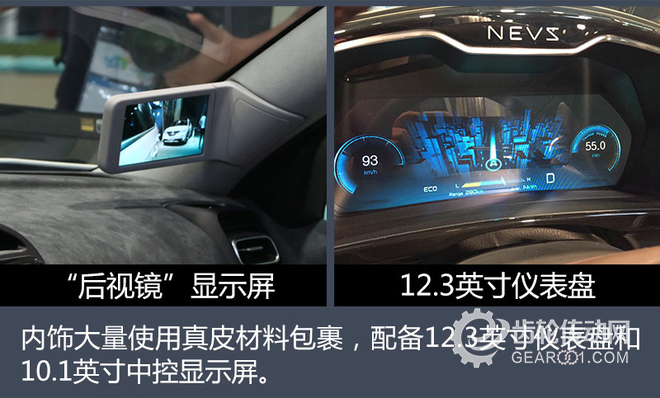 NEVS 9-3內(nèi)飾配有多功能方向盤,并裝配12.3英寸全液晶儀表盤和10.1英寸中控大屏,提供車載WIFI,無線軟件更新,智能手機(jī)電池管理系統(tǒng)等,科技感十足。車內(nèi)運(yùn)用大量真皮材料包裹,包括接觸區(qū)域打孔設(shè)計(jì)的座椅、檔把以及方向盤等。另外車內(nèi)空氣凈化系統(tǒng),30秒內(nèi)就能將PM2.5從800ppm凈化至25ppm以下,提升了新車整體的舒適感。