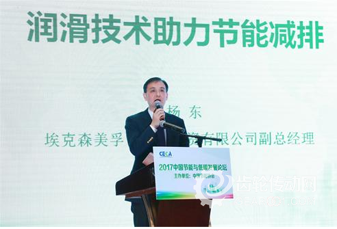 此次論壇吸引了來自節能工作主管部委、各省市節能協會、重點用能單位、節能服務單位領導專家,與會代表圍繞促進工業、交通運輸、公共機構等領域的綠色低碳發展進行了深入的研討及交流。在開幕式上,埃克森美孚(中國)投資有限公司副總經理楊東先生,就全球能源展望及埃克森美孚節能減排措施進行了分享,并代表埃克森美孚領取了由協會頒發的“節能減排企業貢獻獎”,該獎項肯定了埃克森美孚在節能減排領域所作的長期貢獻,也體現出了美孚在環保節能方面的領先地位。在工業節能分論壇上,埃克森美孚(中國)投資有限公司中國北區總工程師任強先生,通過專業的技術分析,詳細闡述了美孚全面潤滑解決方案如何幫助企業進行節能減排,提高經濟效益,同時也向現場來賓展示了美孚全合成TM特優能TM系列油品領先的潤滑技術和節能效果。