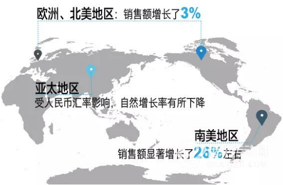 采埃孚在全世界各個(gè)地區(qū)的銷售額增長(zhǎng)不盡相同。在歐洲和北美市場(chǎng),銷售額增長(zhǎng)了3%。而在亞太市場(chǎng),由于中國(guó)人民幣的匯率影響,自然增長(zhǎng)率從8%減少至約2%。在集團(tuán)財(cái)報(bào)中同時(shí)也顯示,南美市場(chǎng)的金融危機(jī)在很大程度上已被克服。在這一區(qū)域的銷售額已從之前的較低水平大幅增長(zhǎng)了約26%。